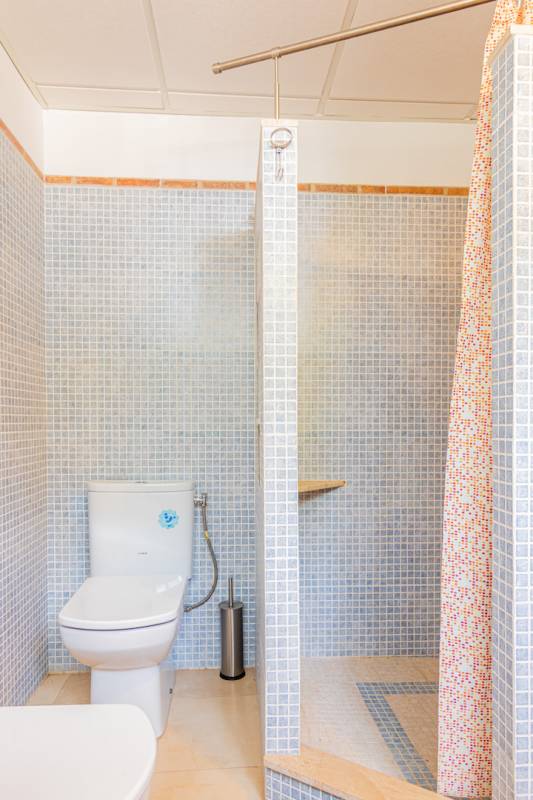 Magnificent villa with large plot located in a very quiet area of Altea La Vieja, the house is distributed over 3 floors. The ground floor consists of entrance hall, a bright living - dining room with pellet fireplace, from this we can access the outdoor area, a large kitchen with fully equipped gallery, as well as a large bathroom with shower. The lower floor has a large garage which could be converted into an additional bedroom, as well as a nice summer kitchen. The first floor consists of 5 spacious bedrooms and 2 bathrooms. Outside we can enjoy beautiful garden areas, 2 swimming pools with waterfall system, 1 outdoor shower, 1 bathroom, plus a large green area. The house is equipped with an armored door, double glazed windows, ducted air conditioning, underfloor heating in bathrooms, electric shutters, solar panels to produce hot water and a pellet stove.