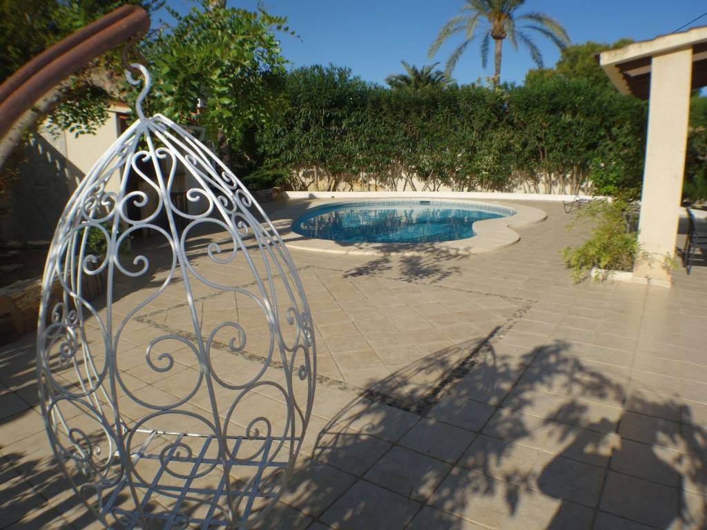 Cerca del centro de Albir se encuentra esta bonita villa de estilo mediterráneo con dos plantas en una bonita parcela de 822m2. Entras a la villa a través de una escalera de película para llegar a un amplio hall de entrada. En la planta baja se encuentra un salón / comedor con chimenea, una gran cocina con comedor y un aseo para invitados con ducha y un garaje amplio con puerta automática. En el primer piso hay 4 dormitorios y dos baños. El dormitorio principal tiene un amplio baño en-suite. ¡También el baño para las otras habitaciones es de un tamaño extraordinario! Desde el dormitorio principal y el dormitorio de invitados tiene acceso a la gran terraza. Cuando entre a esta propiedad, se sorprenderá con la fachada frontal de la villa que está en completo equilibrio. En el lado izquierdo hay una laguna con puente y cascada. En el lado sur de la villa hay un jardín con césped artificial y una piscina con zona de barbacoa. Si desea vivir en Albircerca del centro, esta podría ser su oportunidad!!!!!!! Video : https://www.youtube.com/watch€v=jr_4gW_W4y4