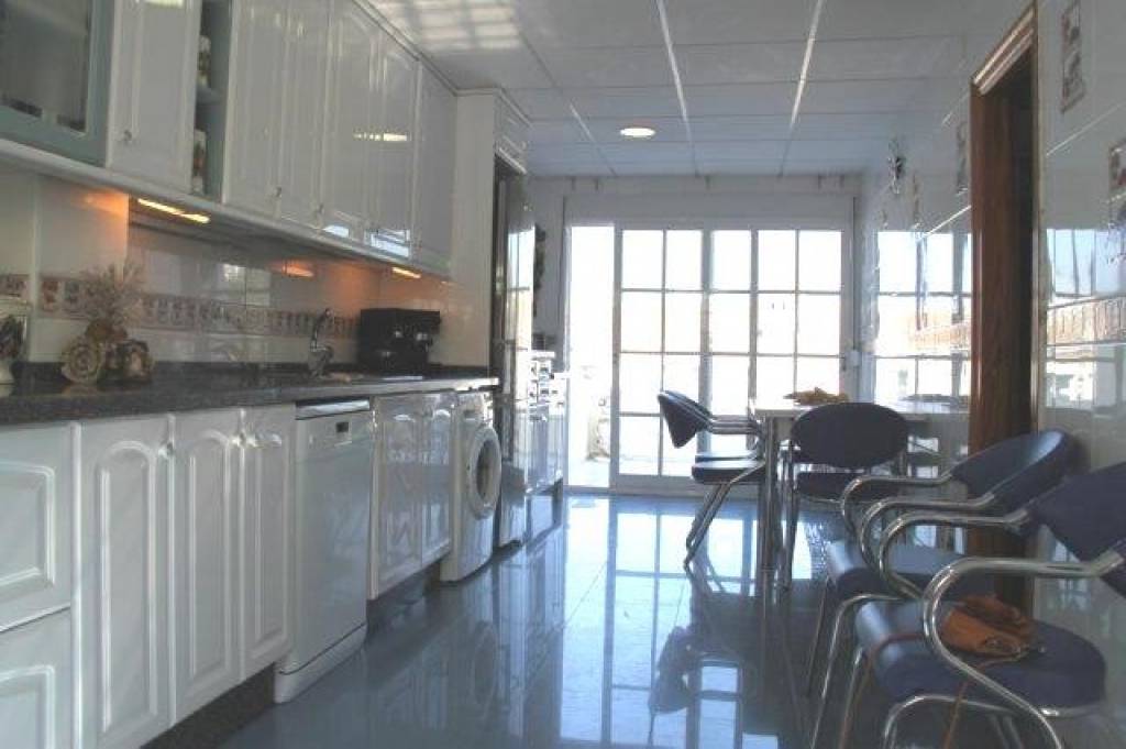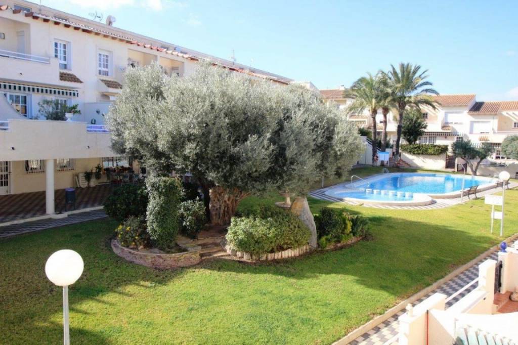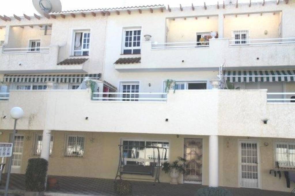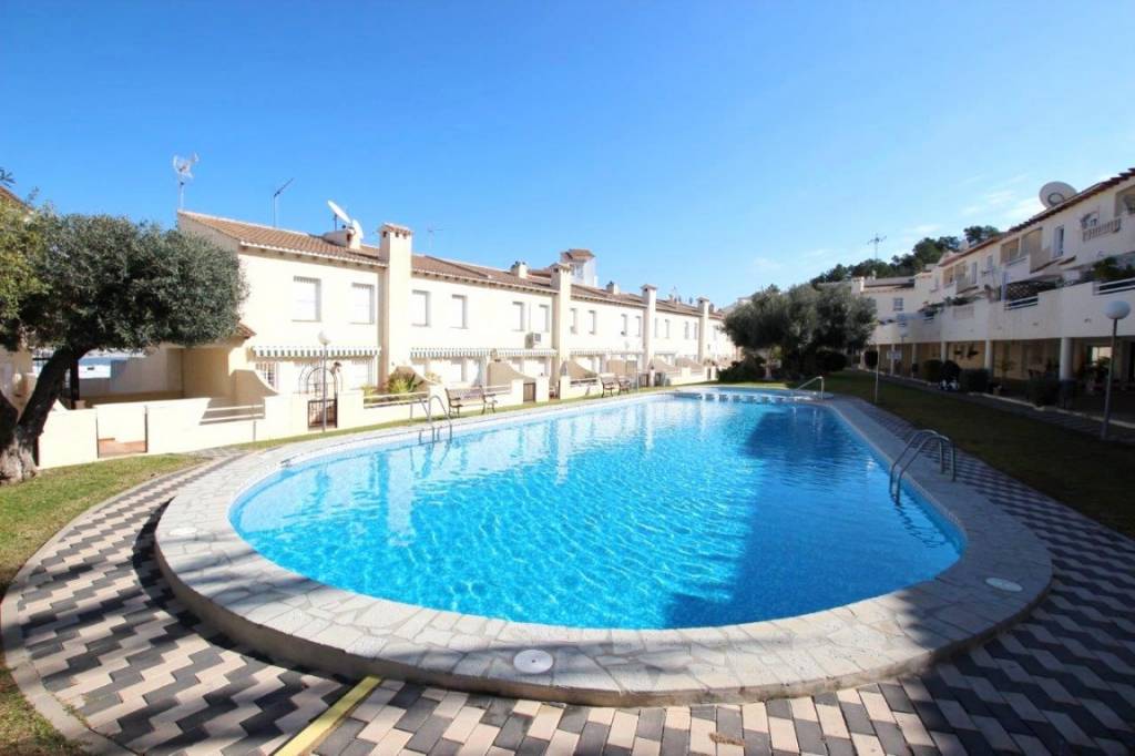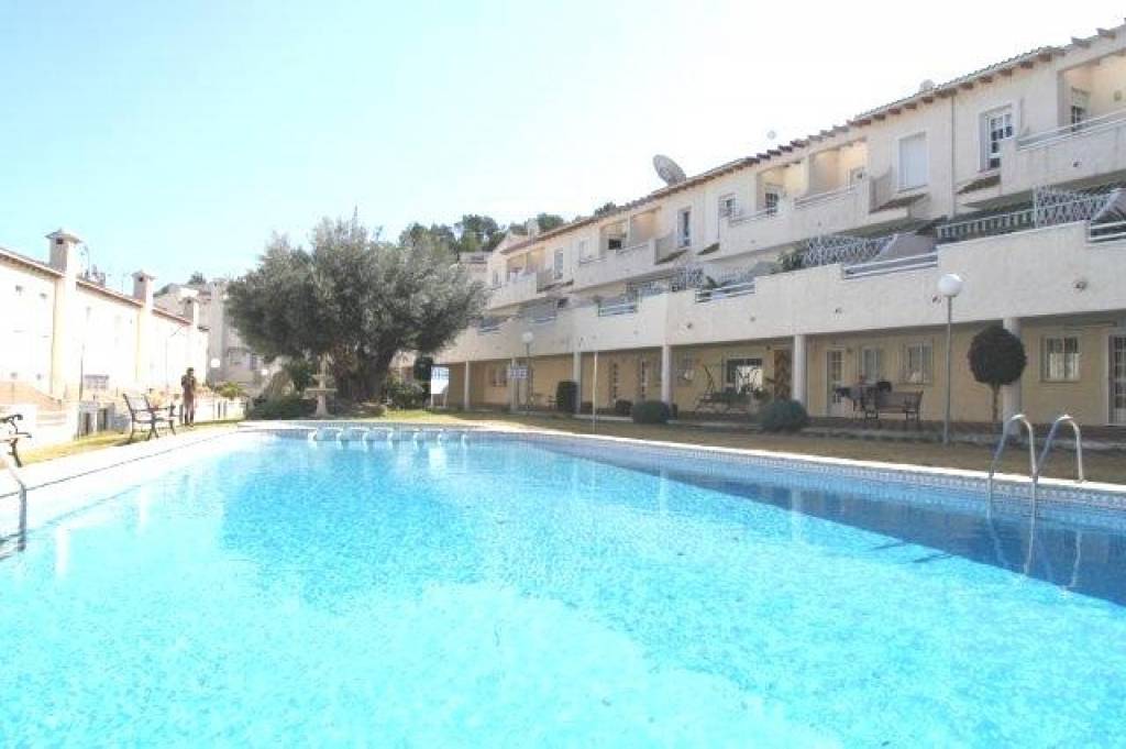 AMPLIO ADOSADO EN BONITA URBANIZACIÓN CON GRAN JARDÍN COMUNITARIO CON PISCINA. Es un adosado de 3 dormitorios que ha sido reformado, tiene un diseño y distribución de las habitaciones diferente al resto de adosados del complejo. Desde la terraza hay algunas vistas al mar ya la montaña. La casa tiene tres amplias terrazas y un balcón. Tiene 3 niveles, y en el nivel más bajo hay un gran salón de 55 m2 que incluye una cocina, y hay un gran baño con bañera. También hay un garaje.